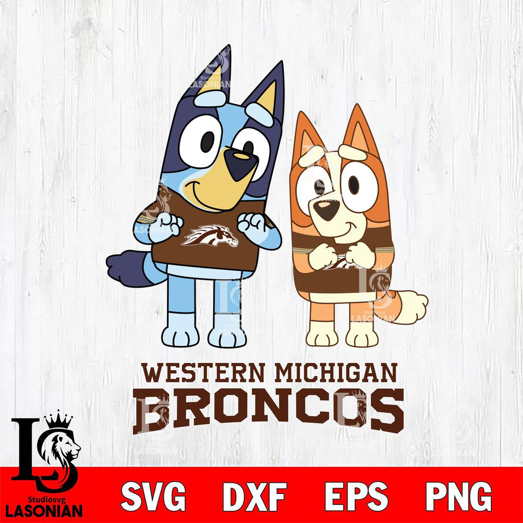 Plus, you can print these designs on a wide range of surfaces such as mugs, t-shirts, tumblers, flags, and more. Unleash your creativity and personalize your world with Western Michigan Broncos Bluey & Bingo 6