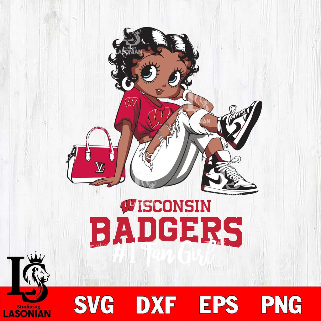 Wisconsin Badgers #1 Black Fan Girl Betty Boop, Svg Eps Dxf Png File, Digital Download