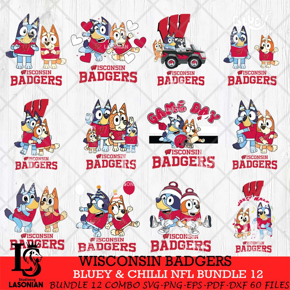 Wisconsin Badgers Bluey & Bingo Bundle 12 SVG Svg Eps Dxf Png File, Bundle NCAA svg, Digital Download, Instant Download
