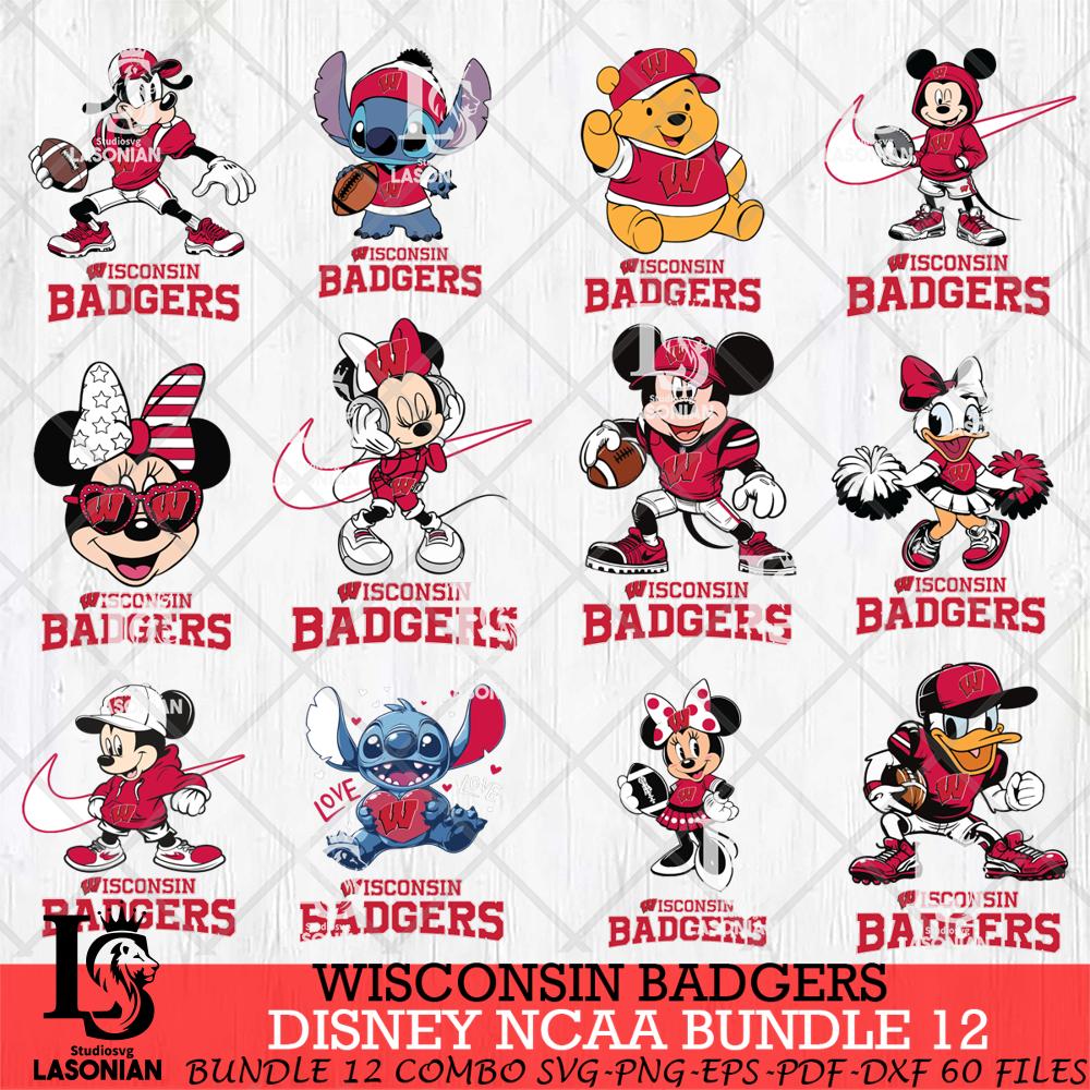 Wisconsin Badgers Disney NCAA Bundle Svg PNG 12 Svg Eps Dxf Png File, Digital Download