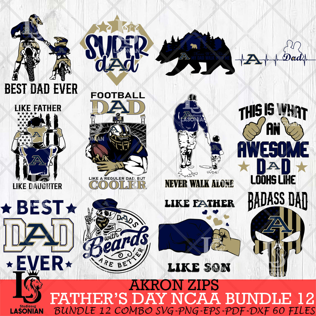 Akron Zips Fathers Day NCAA Bundle 12 Svg Eps Dxf Png File, Digital Download, Instant Download