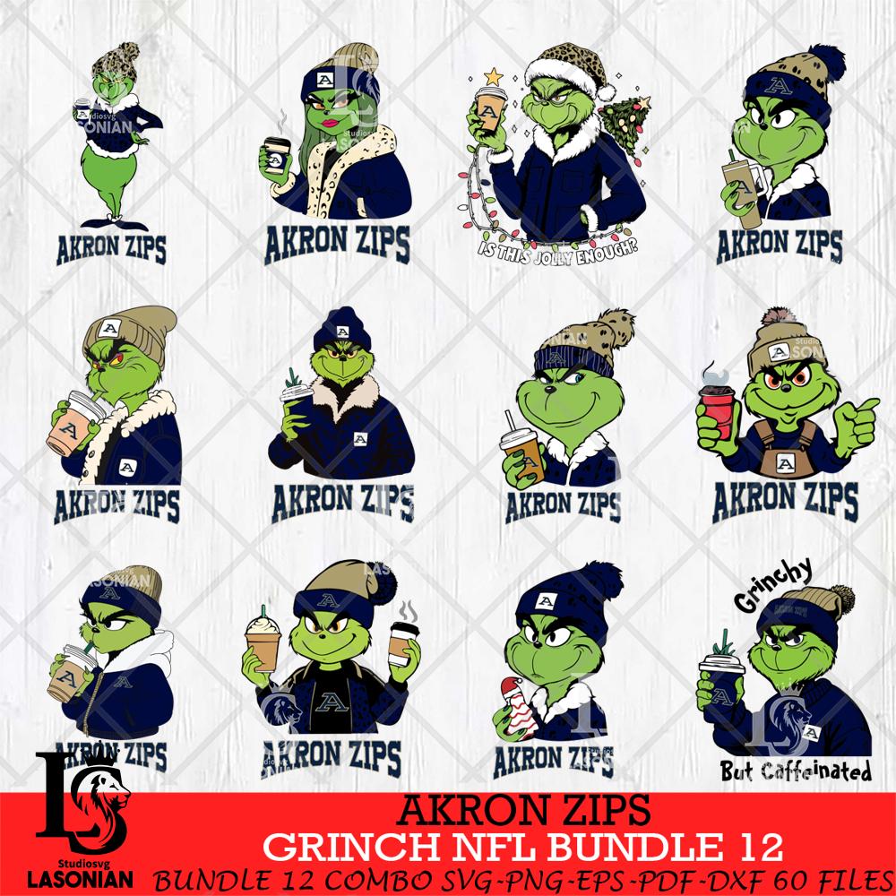 ►With the Akron Zips Grinch NFL Bundle 12 SVG, you can let your creativity run wild. This INSTANT DOWNLOAD package includes a ZIP folder containing the following: