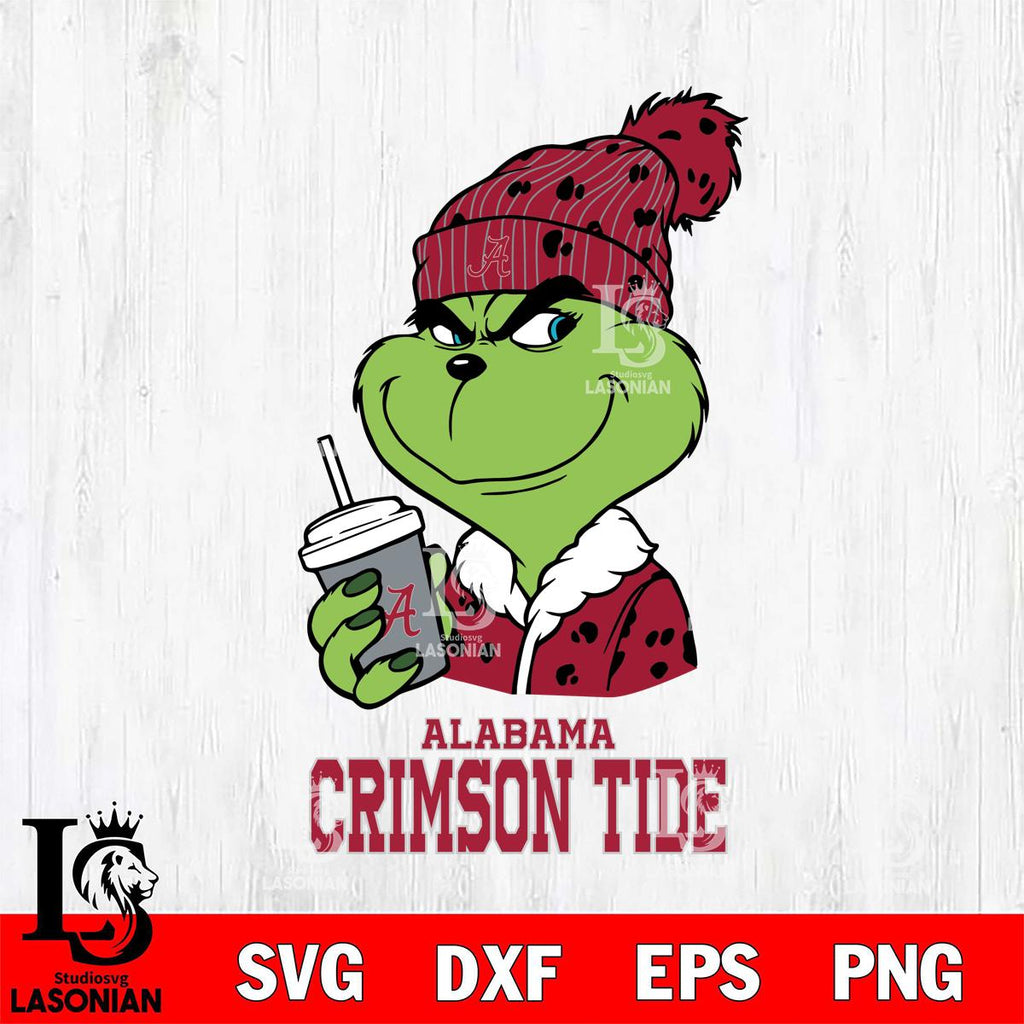 Alabama Crimson Tide Grinch Cofffe Christmas Cut Files Cricut, Svg Dxf Eps Png file, Digital download , Silhouette
