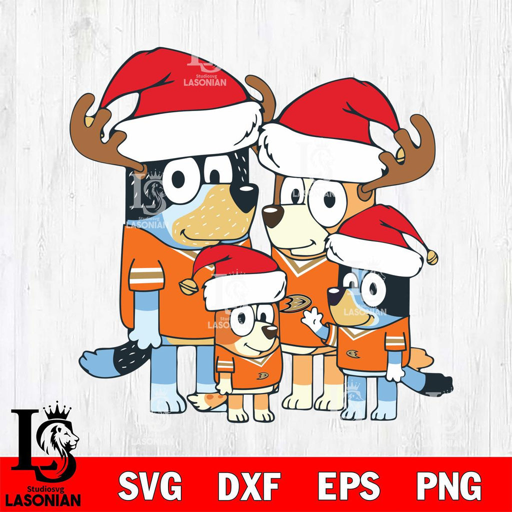 Plus, you can print these designs on a wide range of surfaces such as mugs, t-shirts, tumblers, flags, and more. Unleash your creativity and personalize your world with Anaheim Ducks Bluey Santa Family