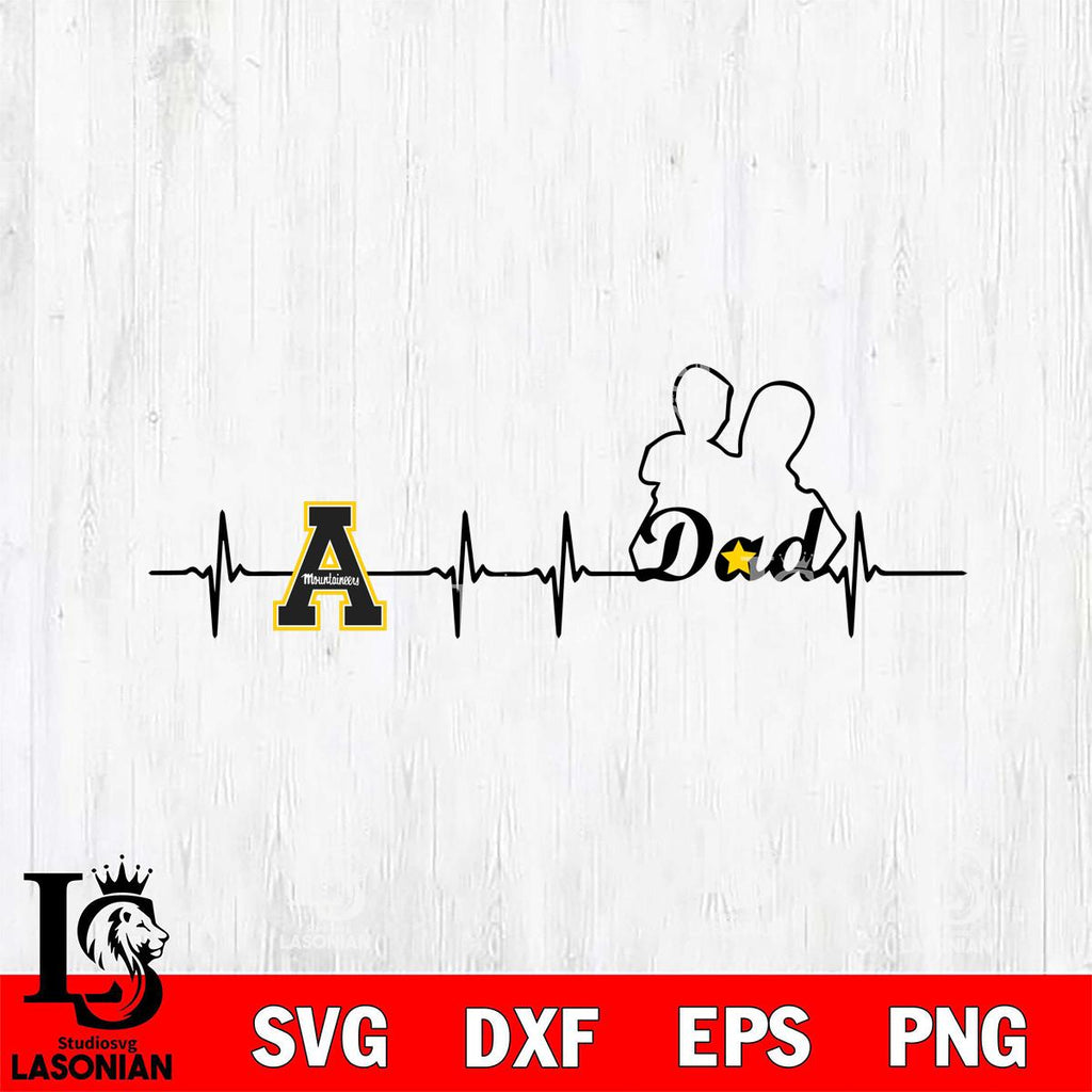 Appalachian State Mountaineers Father Heart Beat Svg Eps Dxf Png File, Digital Download, Instant Download