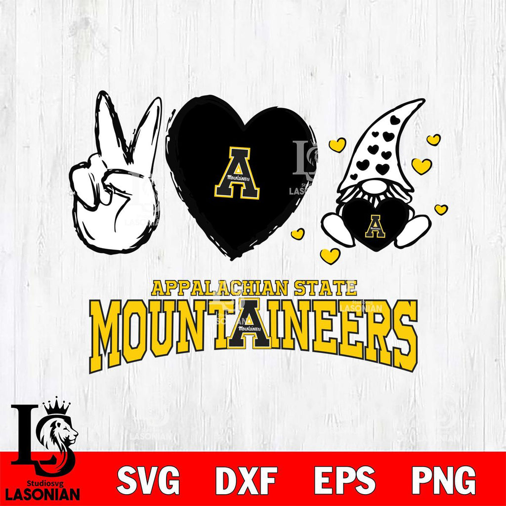 Plus, you can print these designs on a wide range of surfaces such as mugs, t-shirts, tumblers, flags, and more. Unleash your creativity and personalize your world with Appalachian State Mountaineers Gnomes Peace & Love