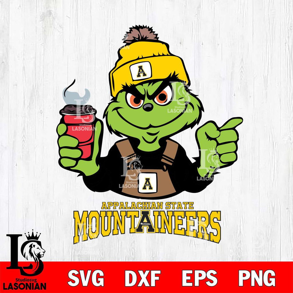 Plus, you can print these designs on a wide range of surfaces such as mugs, t-shirts, tumblers, flags, and more. Unleash your creativity and personalize your world with Appalachian State Mountaineers Grinch with coffee