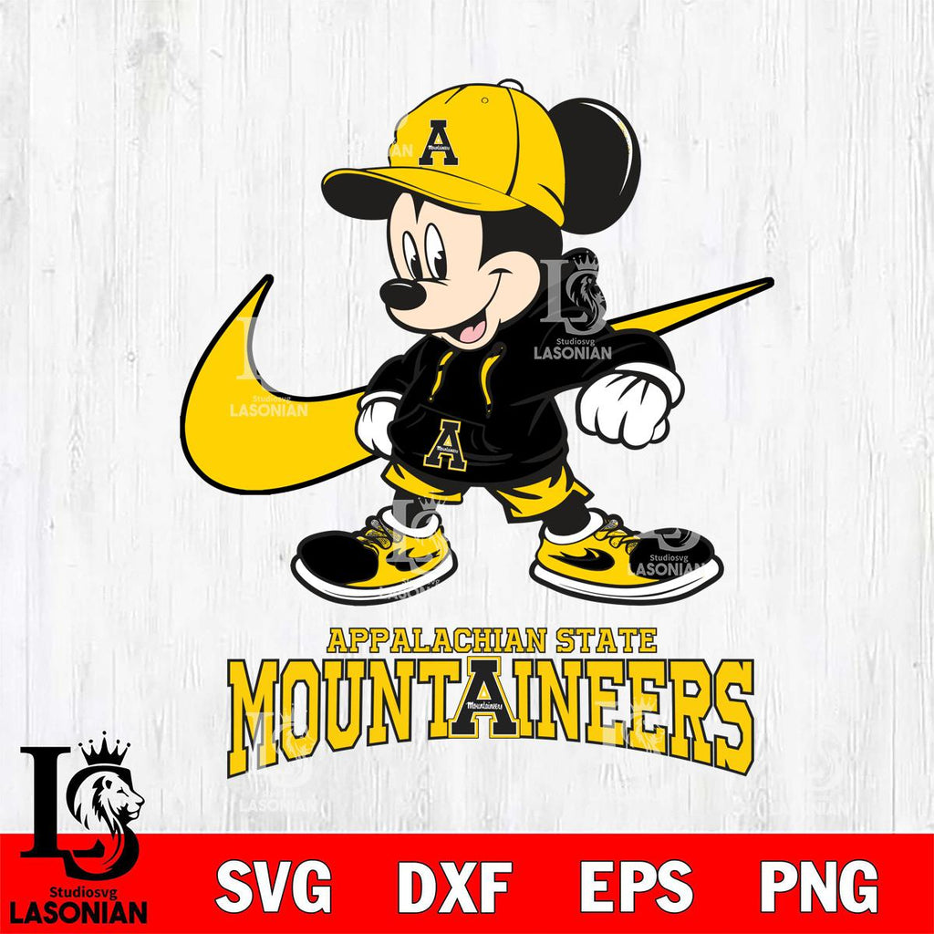 Plus, you can print these designs on a wide range of surfaces such as mugs, t-shirts, tumblers, flags, and more. Unleash your creativity and personalize your world with Appalachian State Mountaineers Mickey Mouse NIKE