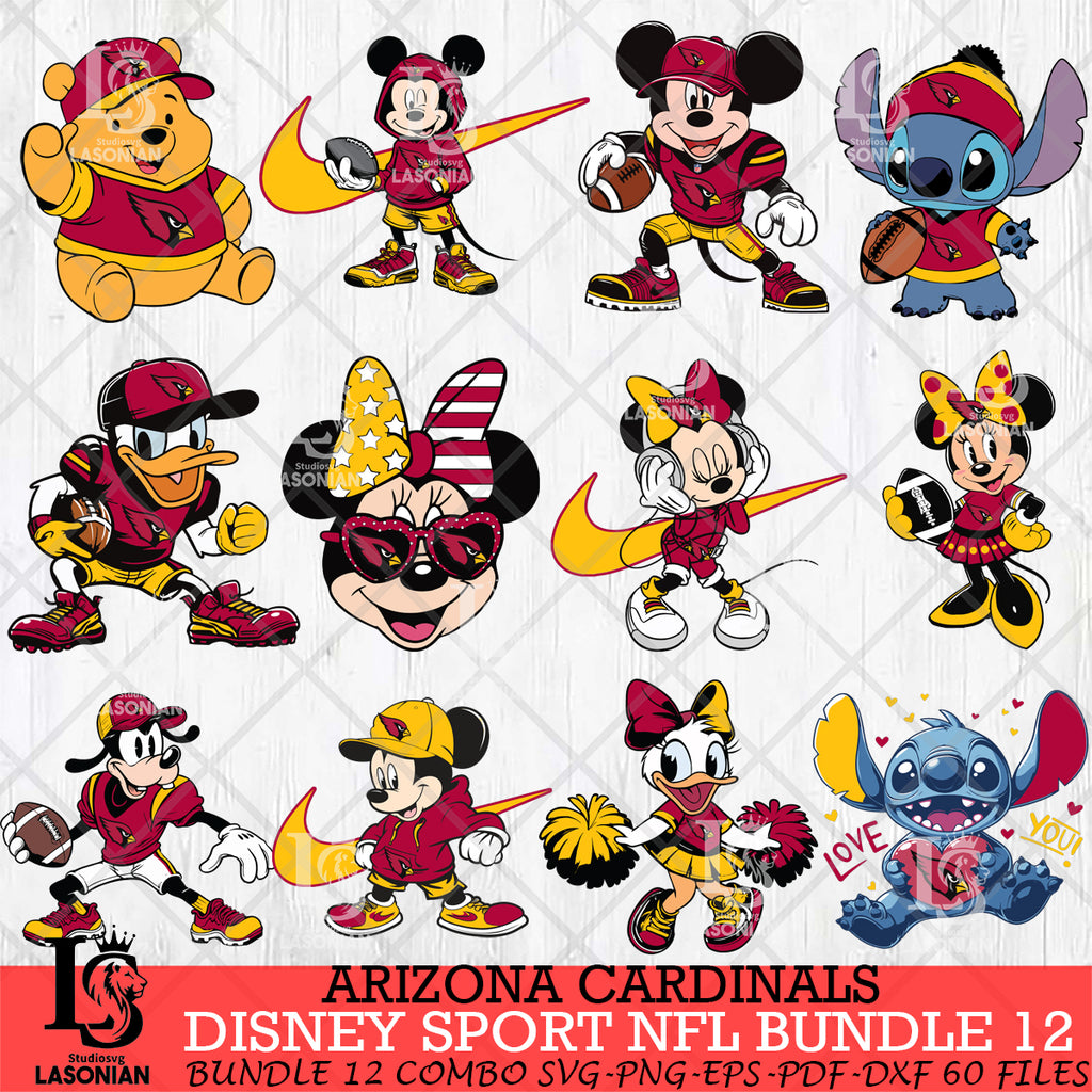 Plus, you can print these designs on a wide range of surfaces such as mugs, t-shirts, tumblers, flags, and more. Unleash your creativity and personalize your world with Arizona Cardinals Disney NFL Bundle 12