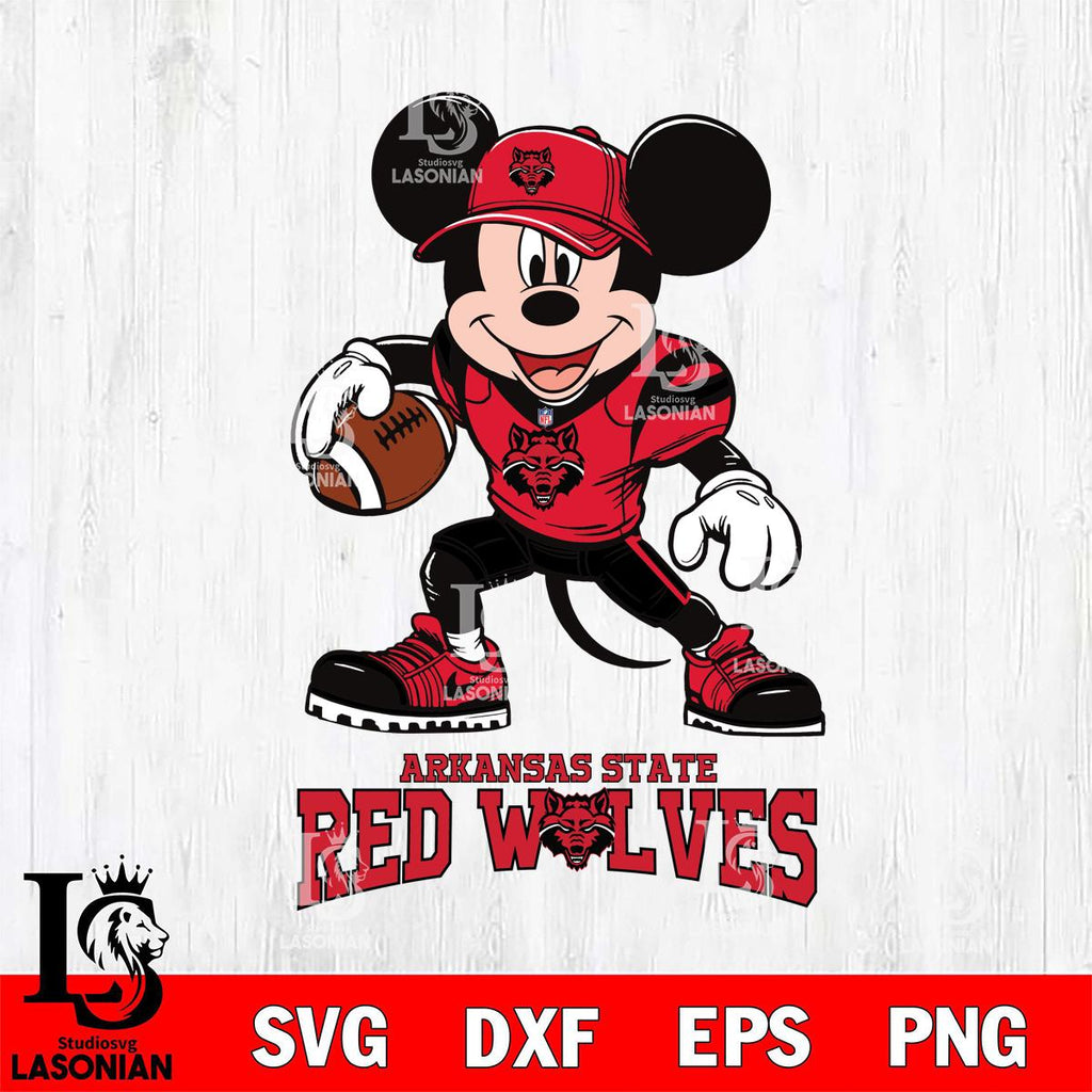 Plus, you can print these designs on a wide range of surfaces such as mugs, t-shirts, tumblers, flags, and more. Unleash your creativity and personalize your world with Arkansas State Red Wolves Mikey Mouse Disney