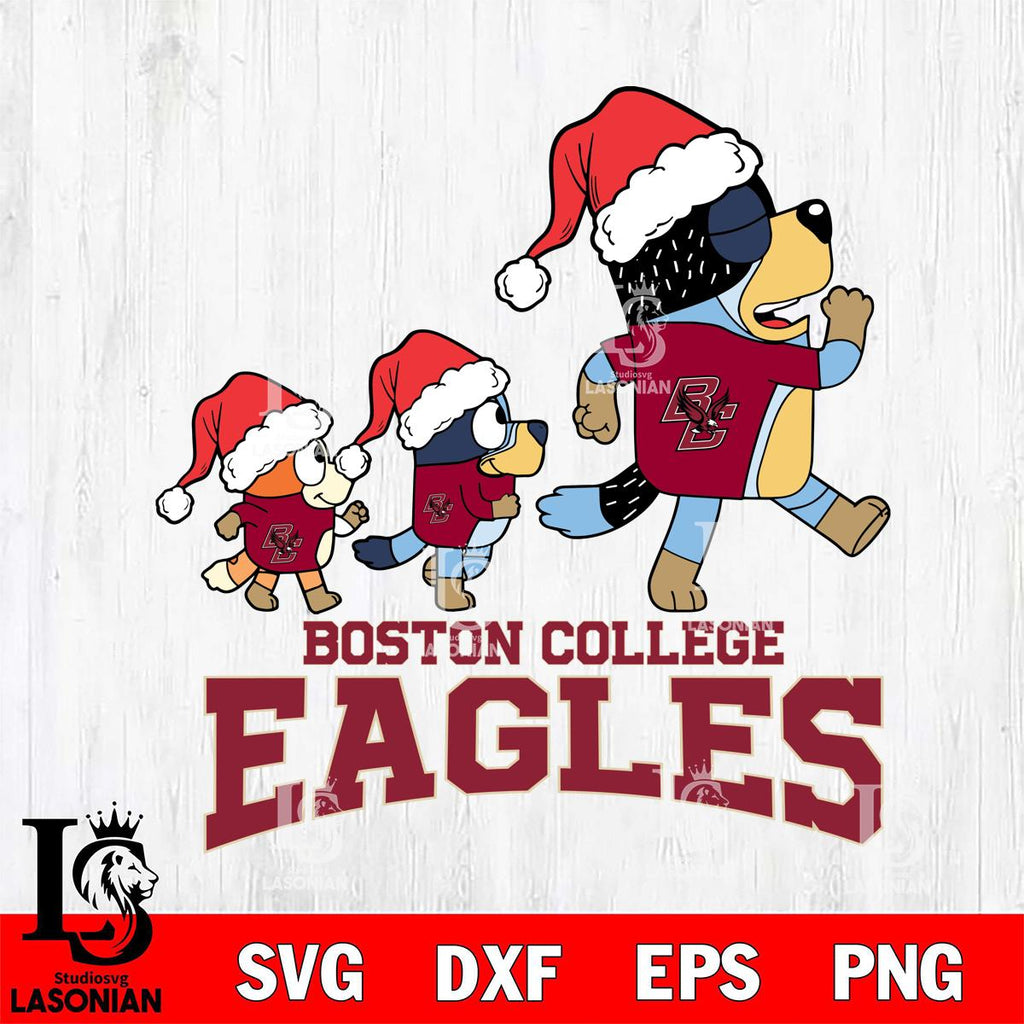 Plus, you can print these designs on a wide range of surfaces such as mugs, t-shirts, tumblers, flags, and more. Unleash your creativity and personalize your world with Boston College Eagles Bluey Family Christmas