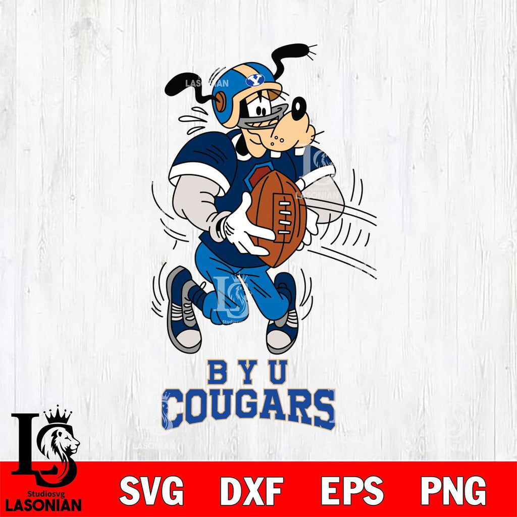 Plus, you can print these designs on a wide range of surfaces such as mugs, t-shirts, tumblers, flags, and more. Unleash your creativity and personalize your world with BYU Cougars Goofy Sport Football