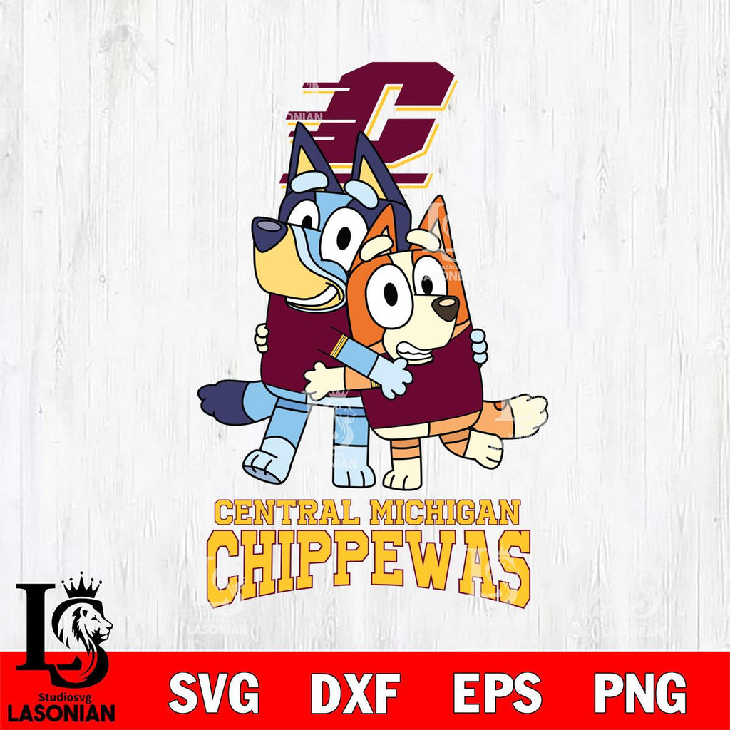 Plus, you can print these designs on a wide range of surfaces such as mugs, t-shirts, tumblers, flags, and more. Unleash your creativity and personalize your world with Central Michigan Chippewas Bluey & Bingo 3