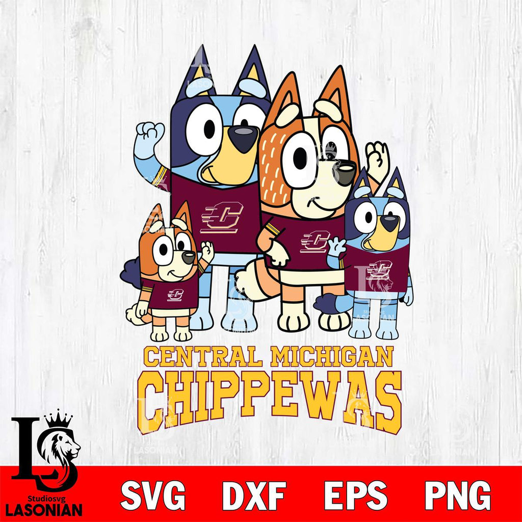 Plus, you can print these designs on a wide range of surfaces such as mugs, t-shirts, tumblers, flags, and more. Unleash your creativity and personalize your world with Central Michigan Chippewas Bluey & Bingo 7