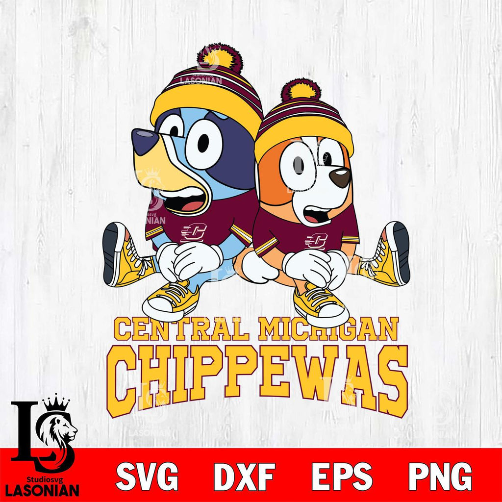 Plus, you can print these designs on a wide range of surfaces such as mugs, t-shirts, tumblers, flags, and more. Unleash your creativity and personalize your world with Central Michigan Chippewas Bluey & Bingo 8