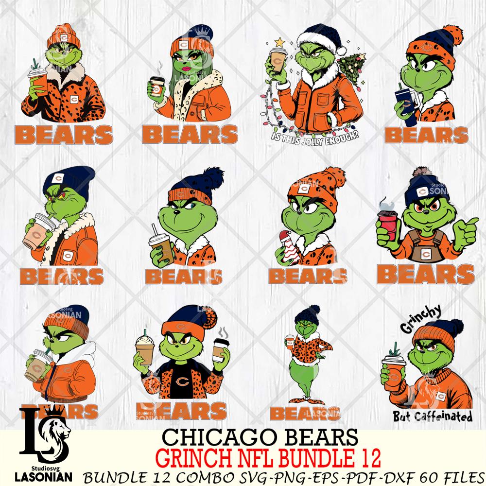 ►With the Chicago Bears Grinch NFL Bundle 12 SVG, you can let your creativity run wild. This INSTANT DOWNLOAD package includes a ZIP folder containing the following: