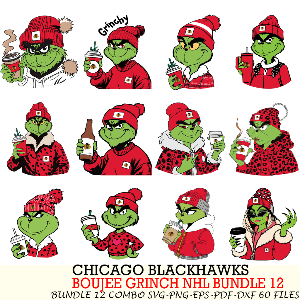 Chicago Blackhawks Boujee Grinch NHL Bundle 12 SVG