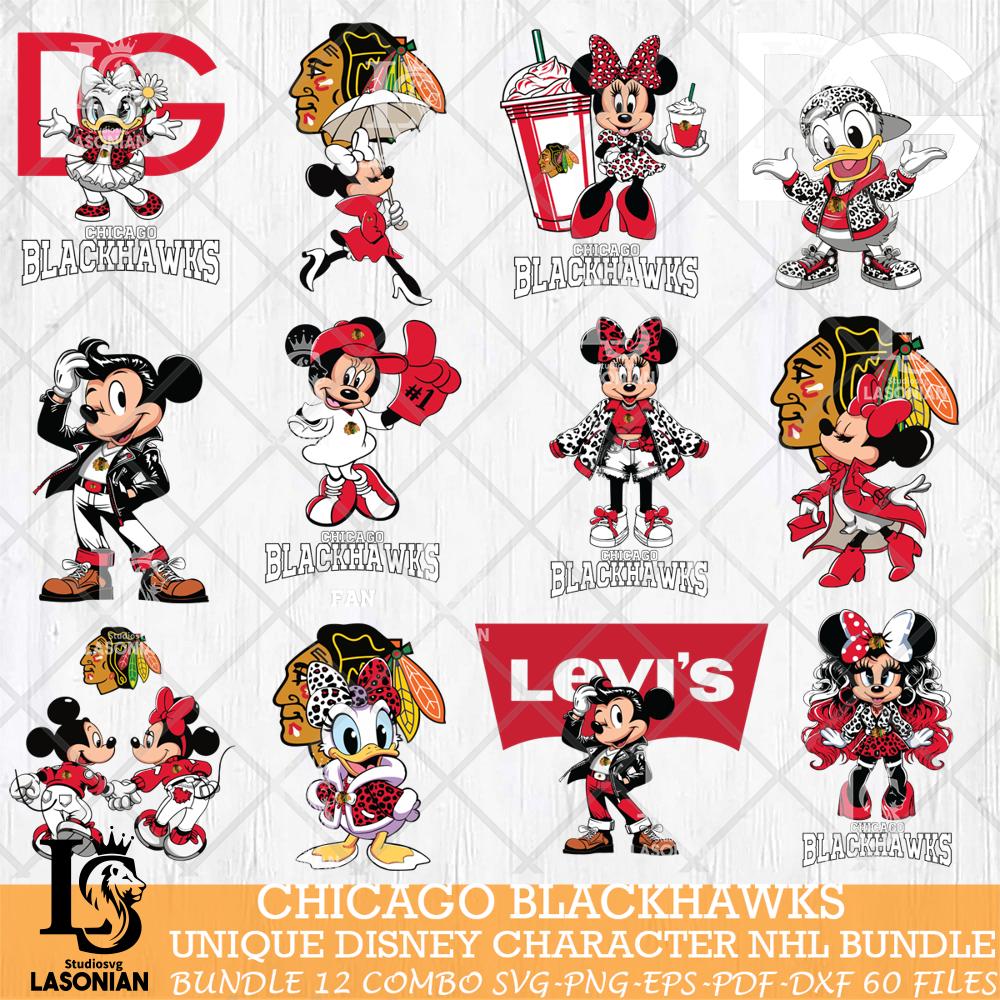 Plus, you can print these designs on a wide range of surfaces such as mugs, t-shirts, tumblers, flags, and more. Unleash your creativity and personalize your world with Chicago Blackhawks Disney character NHL Bundle 12