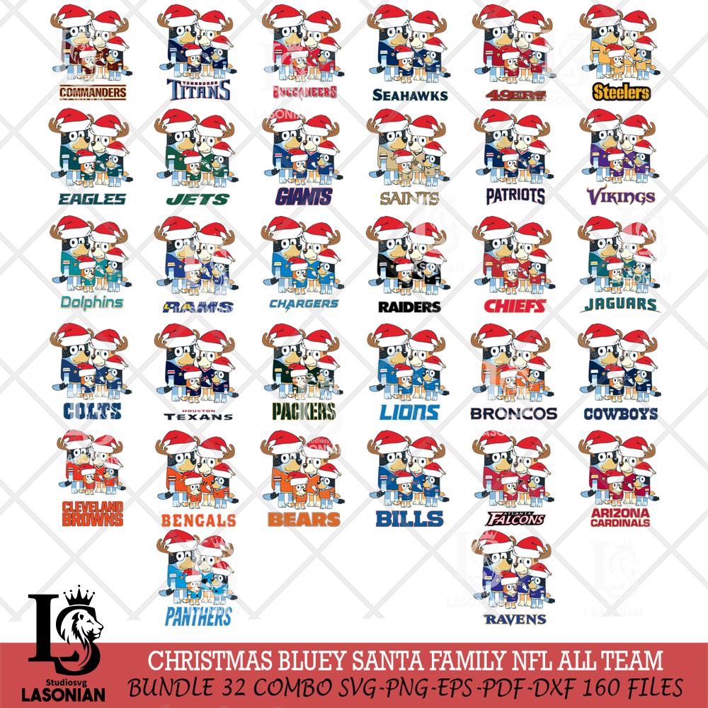 Christmas Bluey Santa Family NFL ALL TEAM Svg Eps Dxf Png File,Cut Svg Files, Digital File, Sublimation