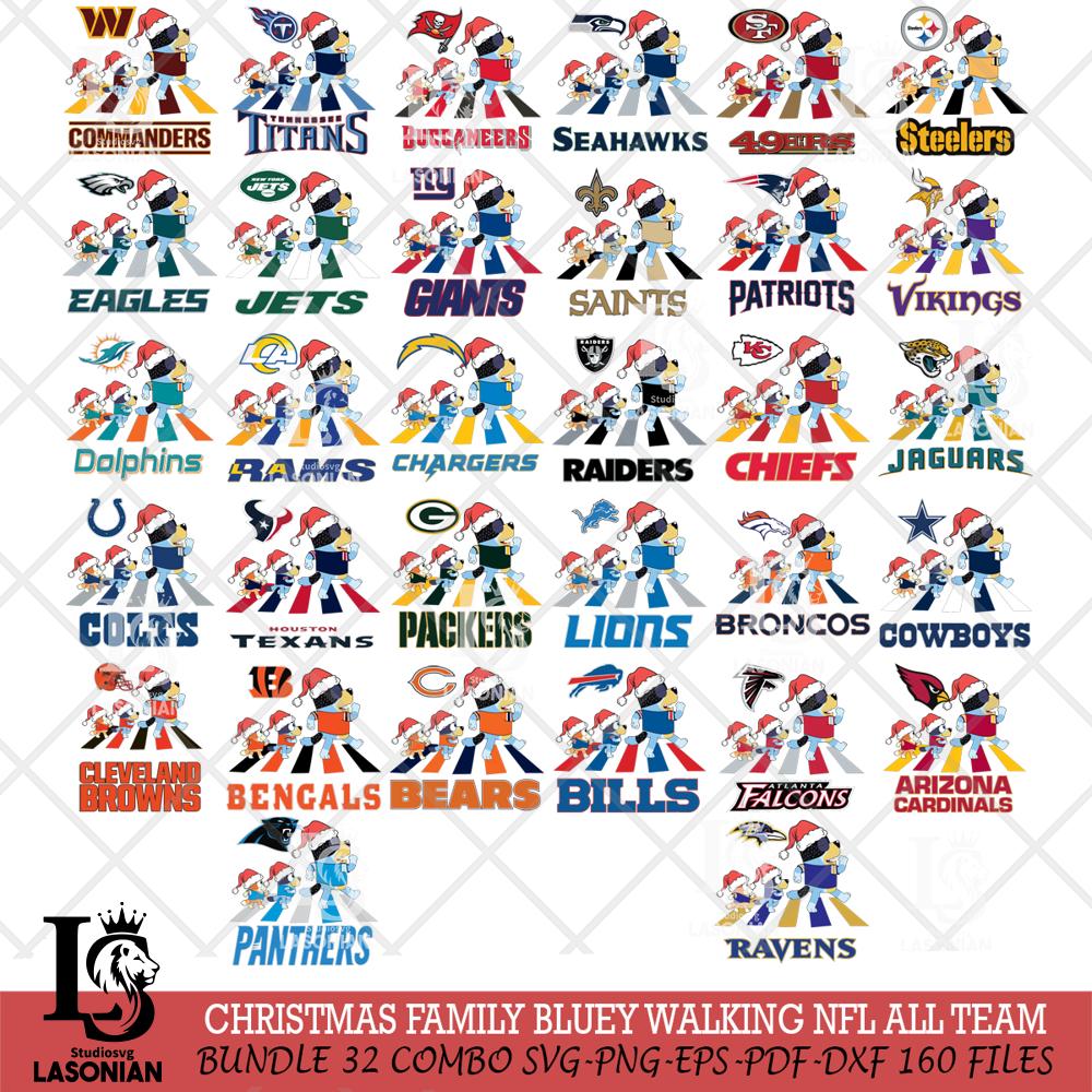 Christmas Family Bluey Walking NFL ALL TEAM Svg Eps Dxf Png File,Cut Svg Files, Digital File, Sublimation