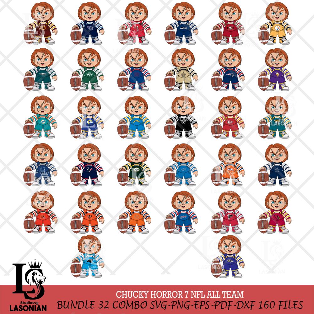►With the Chucky Horror 7 NFL ALL TEAM, you can let your creativity run wild. This INSTANT DOWNLOAD package includes a ZIP folder containing the following: