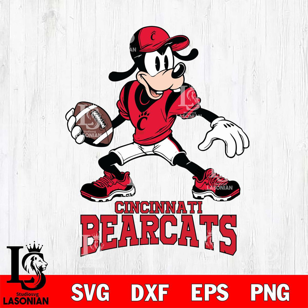 Plus, you can print these designs on a wide range of surfaces such as mugs, t-shirts, tumblers, flags, and more. Unleash your creativity and personalize your world with Cincinnati Bearcats Goofy Disney