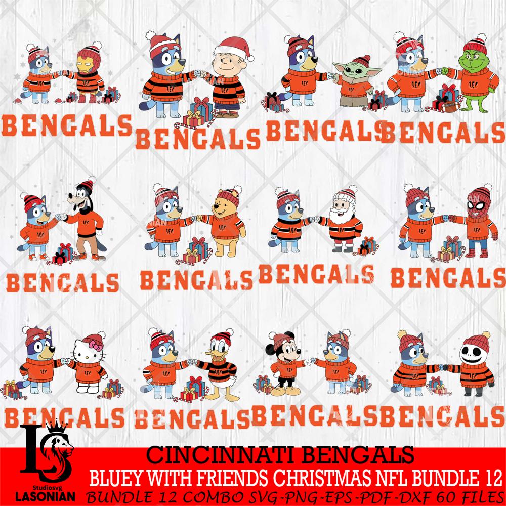 Cincinnati Bengals Bluey With friends christmas NFL Bundle is a digital download, no physical product will be shipped. Once you've downloaded the file, you can embark on a variety of personal projects.