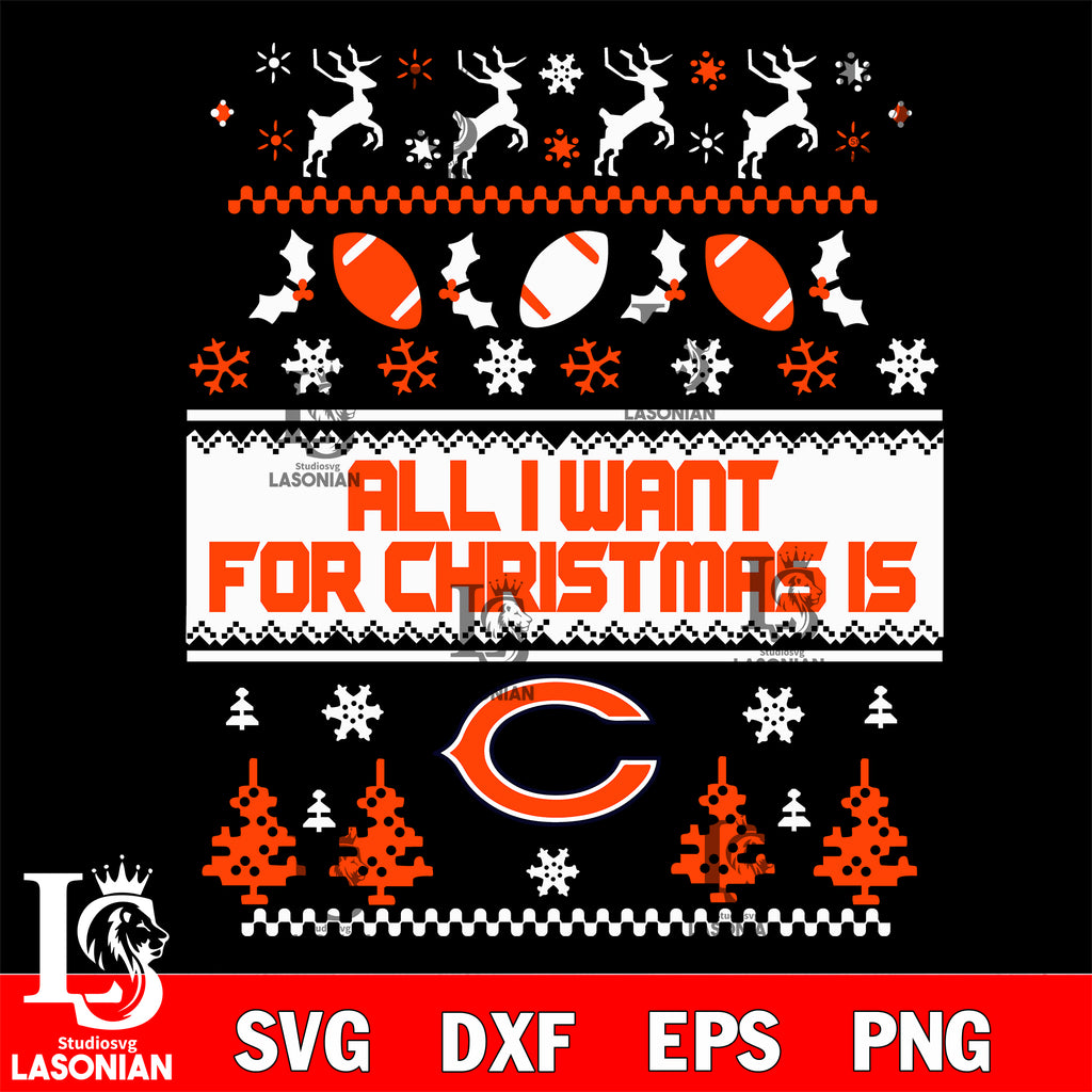 All i want for christmas is Chicago Bears svg dxf eps png, Digital Download , Instant Download