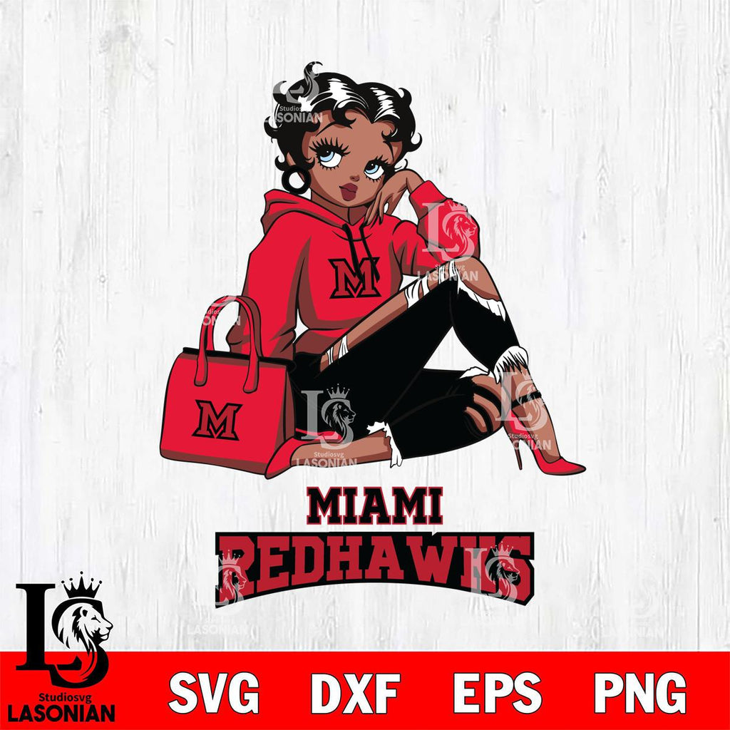 Miami RedHawks Awesome Black Fan Girl Betty Boop, Svg Eps Dxf Png File, Digital Download
