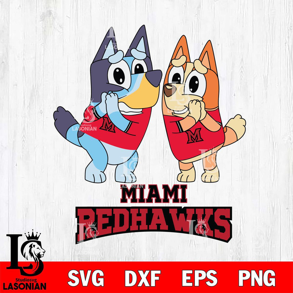Plus, you can print these designs on a wide range of surfaces such as mugs, t-shirts, tumblers, flags, and more. Unleash your creativity and personalize your world with Miami RedHawks Bluey & Bingo 5