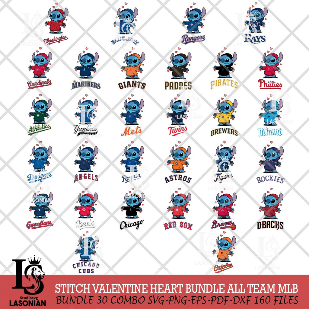 Buy now Stitch Valentine Heart Strings MLB File cut , Football Criucut , Digital Download, MLB SVG DXF EPS PNG PDF File