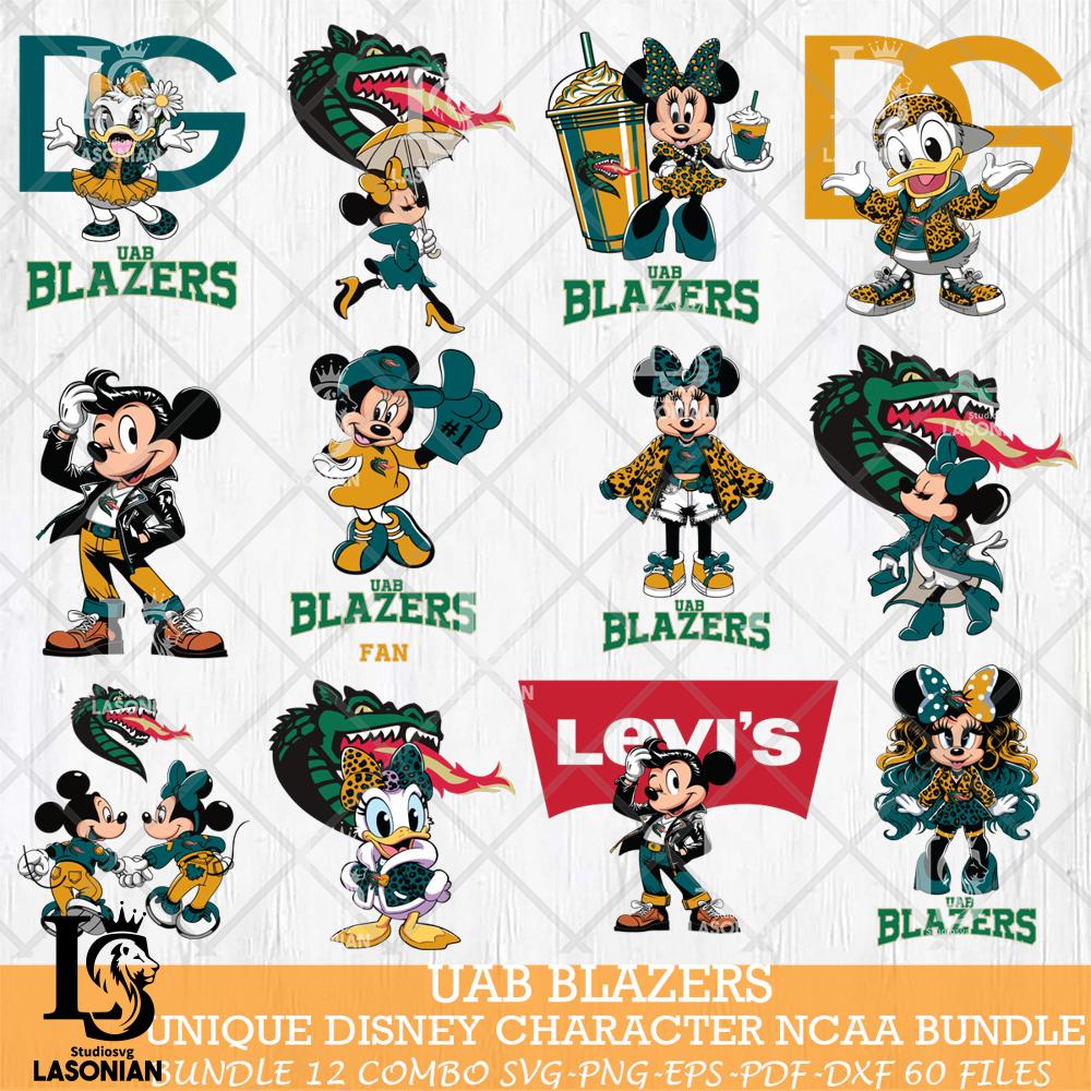 Plus, you can print these designs on a wide range of surfaces such as mugs, t-shirts, tumblers, flags, and more. Unleash your creativity and personalize your world with UAB Blazers Disney character NCAA Bundle 12