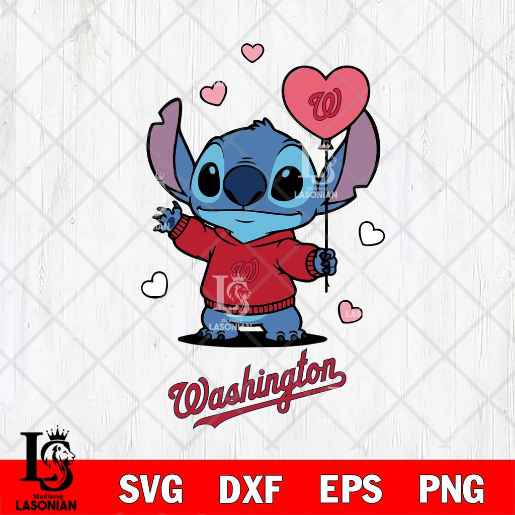Washington Nationals Stitch Balloons Heart Digital Download, MLB SVG DXF EPS PNG PDF File, Stitch File cut , Criucut , Silhouette